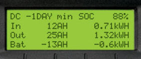 Schermata di stato della batteria - vedere facilmente condizioni attuali del sistema con questo display at-a-glance. Questa schermata mostra un facile da interpretare "indicatore di livello carburante" barra di stato in stile, l'attuale stato di carica e se si sta caricando o scaricando le batterie. Questo è utile per quei proprietari di sistema che desiderano un modo per capire rapidamente lo stato attuale del loro gruppo di batterie.